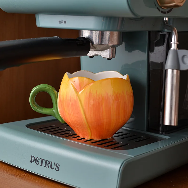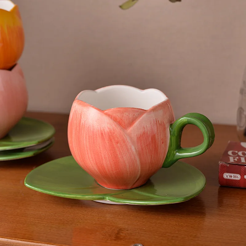 Tulip Flower Porcelain Cup & Saucer, Elegant Afternoon Tea Coffee Set